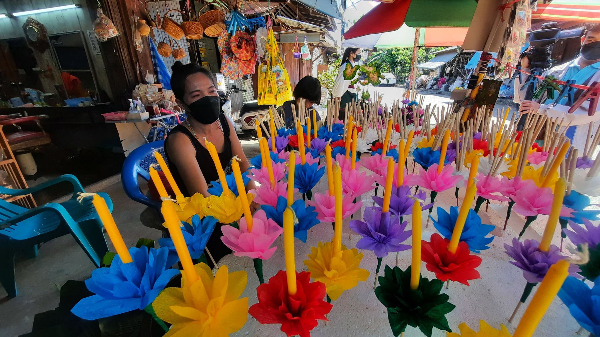 ด้านแม่ค้าขายกระทงรายหนึ่งยังไม่มั่นใจ กระทงที่นั่งทำมาตลอดทั้งวันจะขายได้มากน้อยอย่างไร แต่เมื่อมีลูกค้าแวะเวียนถามหา จึงตัดสินใจทำกระทงขายตั้งแต่ช่วงเย็นเมื่อวาน และในวันนี้ก็ยังจะทำไปเรื่อยๆ ตลอดทั้งวัน ตั้งเป้าขายได้ 20 ถึง 30 ใบ ก็ถือว่าคุ้มค่ามากแล้ว แม้จะเป็นจำนวนที่ต่างจากปีที่แล้วถึง 1 ใน 3 คือช่วงลอยกระทงของปีที่ผ่านมา ขายได้ถึง 100 ใบ แม้ว่าจะได้ไม่เท่าเดิม แต่ก็ถือว่าเป็นการหารายได้เสริม เพื่อช่วยแบ่งเบาภาระค่าใช้จ่ายของครอบครัว