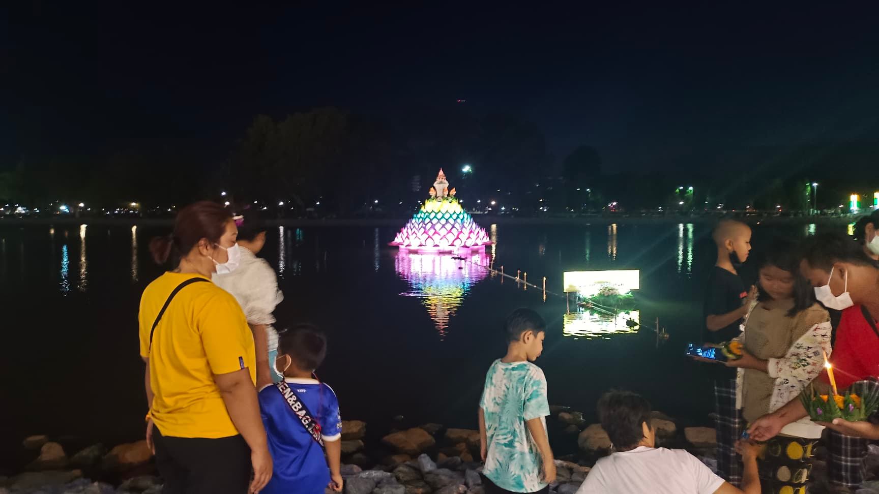 ที่ทะเลสาบทุ่งนาเชย อ.เมือง จ.จันทบุรี บรรยากาศเป็นไปอย่างคึกคัก นักท่องเที่ยว ประชาชนทั่วสารทิศ ร่วมงานประเพณีลอยกระทง ซึ่งทางสถานที่ได้มีการตกแต่งกระทงลอยไฟกลางทะเลสาบอย่างสวยงาม ติดไฟประดับประดาทั่วบริเวณทุ่งนาเฉยพร้อมกับโคมไฟเป็นทั้งข้างทางเข้าอย่างงดงาม
