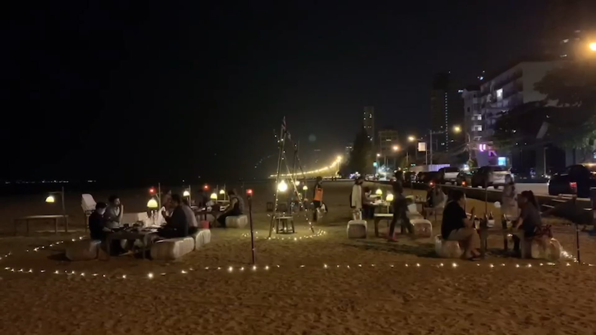 ผู้สื่อข่าวรายงานบรรยากาศชายหาดนาจอมเทียน ต.นาจอมเทียน อ.สัตหีบ จ.ชลบุรี เจ้าของร้านก๋วยเตี๋ยวนำแนวคิดแคมป์ปิ้งมาปรับใช้กับชายหาดที่มีการถมพื้นที่ชายหาดยาวกว่า 100 เมตรนั้นให้พื้นที่ชายหาดดังกล่าวเป็นจุดที่มีนักท่องเที่ยวจำนวนต่างพาออกไปนั่งรับลม ถ่ายรูป