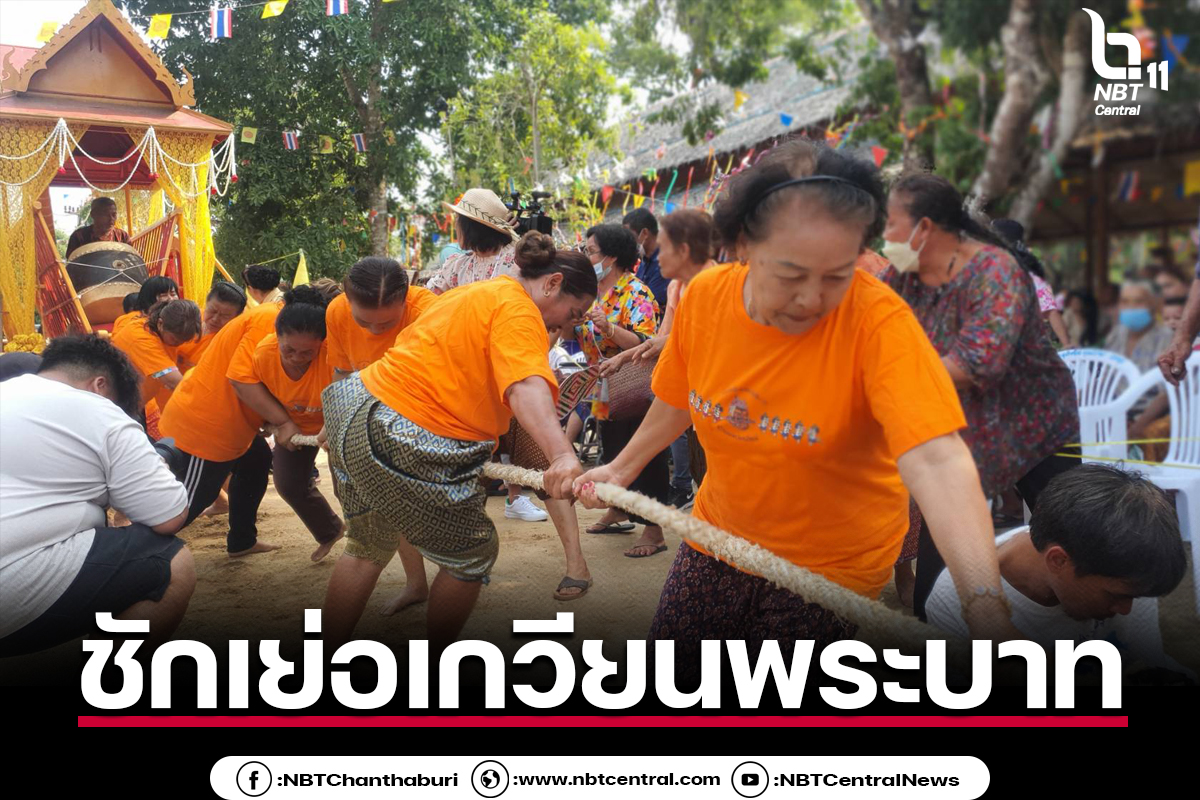 เมื่อพิธีการเหล่านี้เสร็จสิ้น ก็จะถึงเวลาของการละเล่นสำคัญ นั่นก็คือ ชักเย่อเกวียนพระบาท ที่เป็นกิจกรรมสืบสาน รักษา มรดกภูมิปัญญาท้องถิ่น โดยปีนี้ ทีม VVIP นำโดย ผู้ว่าราชการจังหวัดจันทบุรีและส่วนราชการ พบกับ ทีมชุดตะปอนใหญ่ นำโดย ผู้นำท้องถิ่น โดยผลปรากฏว่า ทีม VVIP ชนะ และอีกคู่ ที่เป็นคู่ไฮไลท์ ทีมนางฟ้า พบกับ ทีมนางงาม ผลปรากฏว่า ทีมนางฟ้า ชนะไปอย่างขาดลอย นอกจากนี้ภายในบริเวณวัด ยังมีการร่วมก่อพระเจดีย์ทรายกลางคืน พร้อมจุดเทียนสมโภชพระเจดีย์ทราย ด้วย
