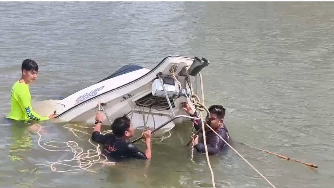 (21 ต.ค.68) ร.ต.ท.พิทักษ์พงศ์ วงศ์พิทักษ์ รอง สว.(สอบสวน) สภ.ปากน้ำประแสร์ จ.ระยอง รับแจ้งเหตุเรือสปีดโบ๊ทเฉี่ยวชนตอม่อสะพานประแสสิน จมอยู่กลางคลอง ห่างจากสะพานประมาณ 500 เมตร บริเวณคลองแม่น้ำประแส ม.1 ต.ปากน้ำประแส อ.แกลง จ.ระยอง จึงประสานอาสากู้ภัยพุทธศาสตร์สงเคราะห์ พร้อมชุดสืบสวนลงพื้นที่ตรวจสอบ