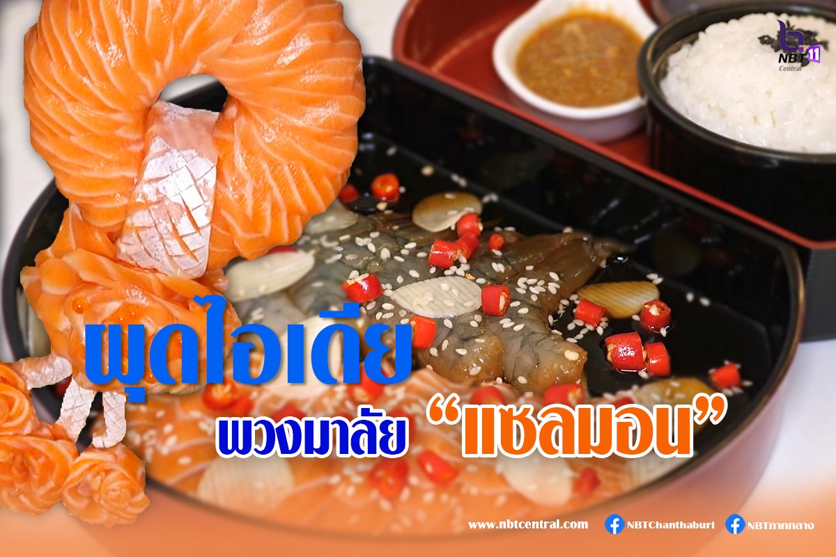 ที่ร้านแซลมอนจันท์ ตั้งอยู่ข้างโรงเรียนเบญจมราชูทิศ อำเภอเมือง จ.จันทบุรี คุณส้ม เจ้าของร้าน ได้คิดทำพวงมาลัยแซลมอน เพื่อตอบรับกระแสวันแม่ โดยคิดว่าปลาแซลมอน เป็นปลาที่ดีต่อสุขภาพ เหมาะกับผู้ต้องการลดไขมัน